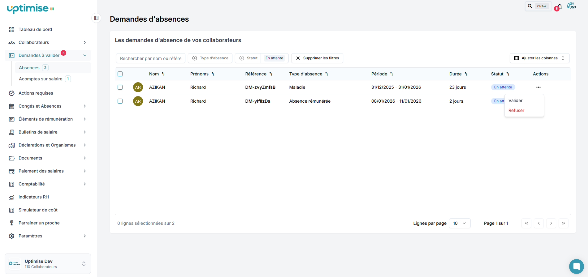 Le collaborateur recevra une notification sur le statut de sa demande.